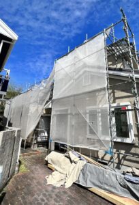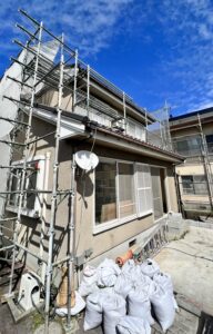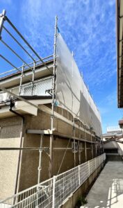 シール、外壁塗装用足場の組み立てを行いました。
