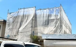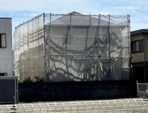 外壁塗装用足場の組み立てを行いました。