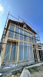 和歌山県岩出市にて新築先行足場の組み立てを行いました!